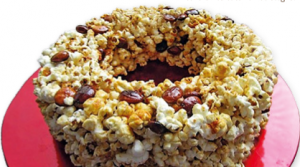 Después de hacer la espuma con el azúcar y al estallar la primera rosa, vertemos las almendras desparramadas por la sartén. Rápidamente, tapamos la sartén y bajamos el fuego. Movemos la sartén por el mango para que se asole el panizo y estalle. Al menguar los chasquidos, apartamos la sartén del fuego y mezclamos bien el azúcar caramelizado con las rosas y las almendras. Tenemos que tener preparado un recipiente redondo con un cortadillo en medio para darle al turrón la forma de corona.