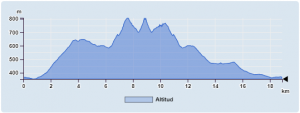 - Desnivel total, descenso: 550 m